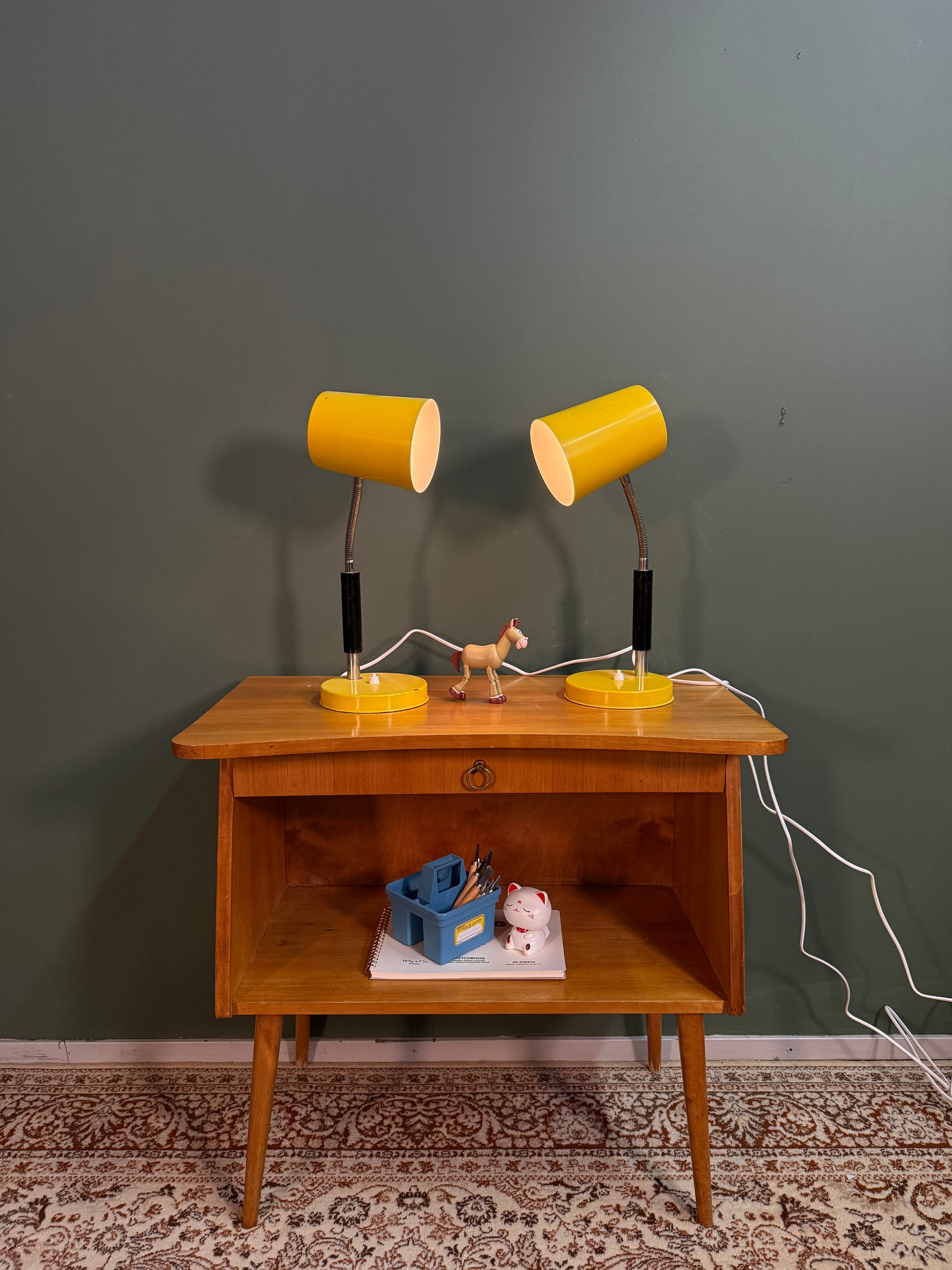 Myymämme valaisimet ovat aitoja vintage-aarteita, joilla on takanaan vuosikymmenten historia. Niissä saattaa esiintyä ajan tuomia käytönjälkiä, kuten pieniä naarmuja tai patinaa, nämä yksityiskohdat tekevät jokaisesta valaisimesta ainutlaatuisen.