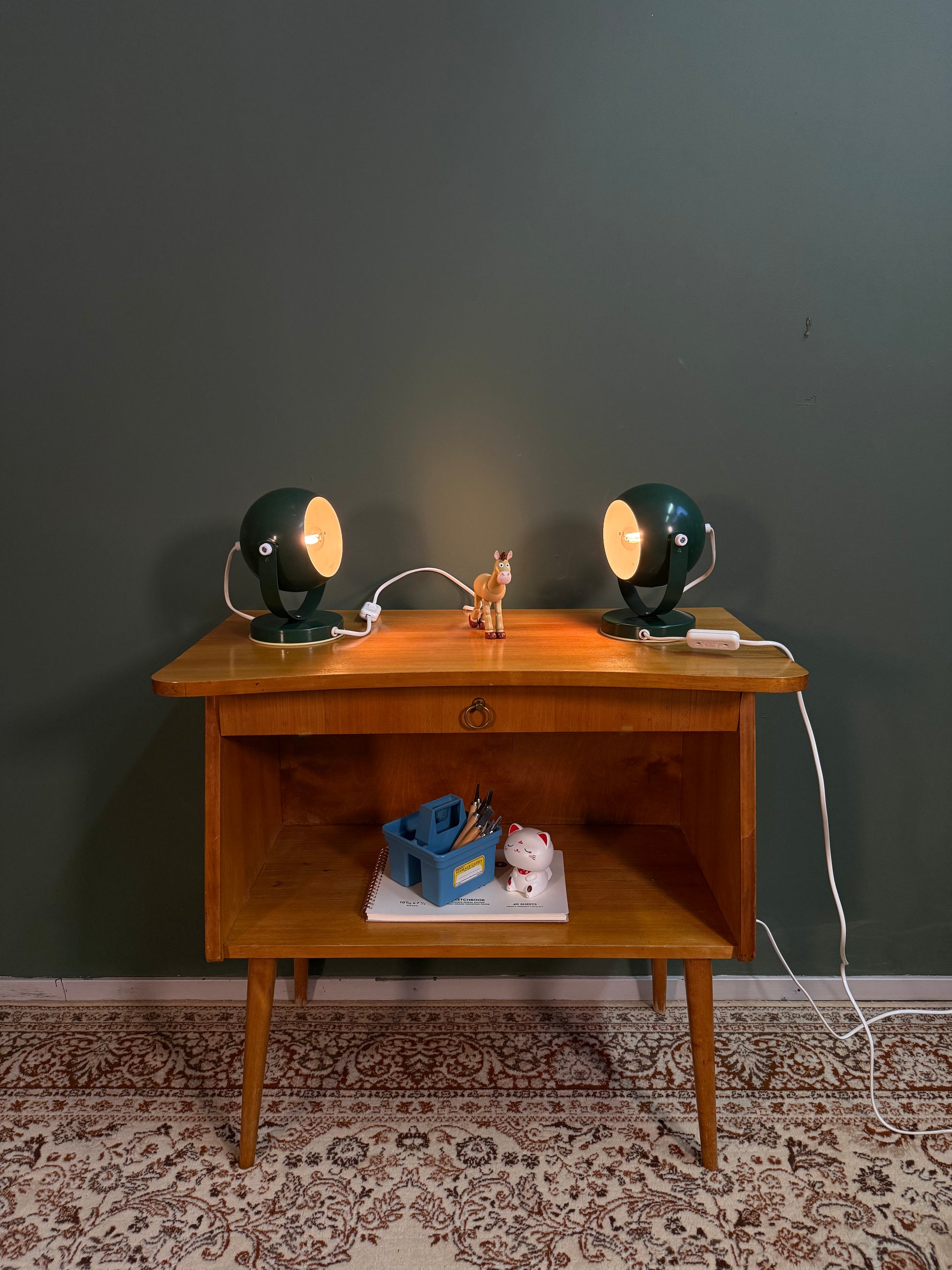 Myymämme valaisimet ovat aitoja vintage-aarteita, joilla on takanaan vuosikymmenten historia. Niissä saattaa esiintyä ajan tuomia käytönjälkiä, kuten pieniä naarmuja tai patinaa, nämä yksityiskohdat tekevät jokaisesta valaisimesta ainutlaatuisen.